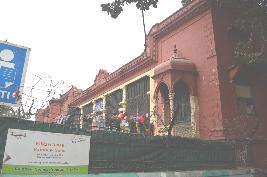The wall of this structure is made up of bricks and plastered with cement and lime mortar. Red sandstone is used in the cornice and lintel level. Floor is made up of both sandstone and cement. |