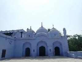 There are two structures inside the Rauza Sharif complex- a mosque and a tomb. The tomb of Khwaja Muhammad Zubair is constructed on a raised plinth approached by a flight of stairs. It is a single-storey structure built on a square plan. The structure consists of a globular dome and four octagonal shaped minarets. The dome is supported on a circular drum and is crowned by an inverted lotus with finial on top. The minaret is surmounted by a ribbed dome with finial on top and petaled decoration at its base. The structure has a pointed arch with niches on either side. The niches have multi-foliated arches inside a rectangular frame. The structure has been renovated and white washed. |