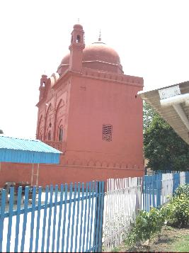 It is a single-storey built on a rectangular plan. The structure has three domes and it is built on a rectangular plan. It is situated on a raised platform with flight of stairs. The dome is supported on an octagonal drum and is surmounted by an inverted lotus and pinnacle on top. The front facade consist of three arched openings at the entrance along with two minarets on both sides of the frontal facade and kangoora battlement pattern on the parapet. It has a verandah decorated with lattice screens on the surrounding walls. |