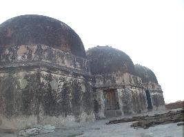 Only the three domical structures and outlines of the wall survive. There are carvings of kangoora battlement pattern on the parapet wall. The walls are decorated with niches having arcaded designs. |