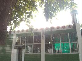 The structure is built of bricks and lime mortar and modern building materials like tiles and glass were used. |
