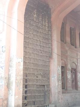 The building is built of lakhori bricks and lime mortar. The door and windows made up of wood. It has been coated with lime plaster. |
