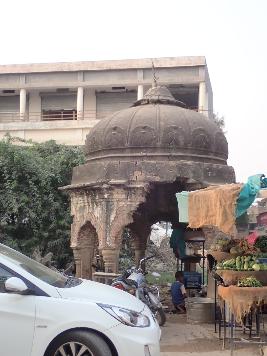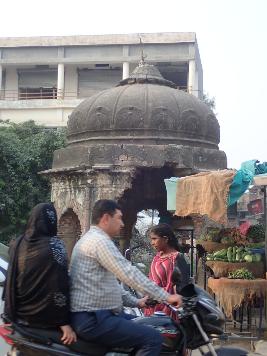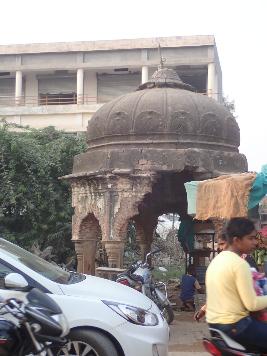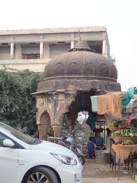 It is a big chhatri placed in on the roadside. The chhatri is built on an octagonal plan. It has multi foliated arched openings in all sides. There is a octagonal drum with a slanting cornice. There is a ribbed dome with an inverted lotus at the top. |