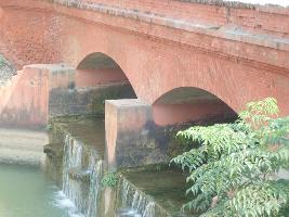 The structure is built on a rectangular plan. It has multiple opening to pass the river water. It has a passage to crass the river. It has an embankment wall. |