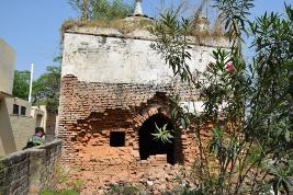 This structure is built on a rectangular plan. The fa ade has pointed arch entrance with small niches on both the sides. There is pointed arch design on the fa ade on both the sides of the entrance. There is a dome and minarets with circular top having small windows. It has decorated parapet railing. |