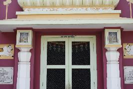 The whole structure is constructed of modern building materials like bricks, cement and tiles. The temple is painted in maroon colour. |