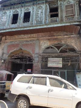 This is a two storey building made on a rectangular plan. The main entrance is approached by a multi cusped arch with iron gate. There is another pointed arch gate with iron door next to the main entrance. The upper storey has rectangular fa ade with series of arches with rectangular pilasters supporting the projected cornice above. The structure has flat roof. |