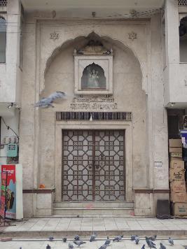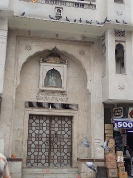 This is a double storey building made on a rectangular plan. The main entrance is approached by a flight of stairs with multi foliated arch and a wooden door having a sculpture inside an arched window above it. |