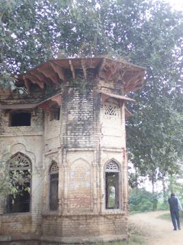 It is a huge single storey structure built on a rectangular plan. There is an arched opening in the centre which may have been used as an entrance. The structure has two bastions on either side. The bastions have slanting cornice above them supported on multiple brackets. The exterior walls of the structure has multiple arched designs and windows. |