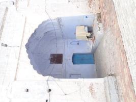 The structure is built using sirhindi bricks and lime mortar. The window and door are made of wood. |