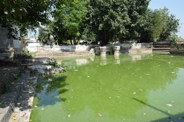 The structure consists of a rectangular ground plan consisting of a bricked waterbody along with a small rectangular section containing chambers adjacent to one side of the waterbody. |