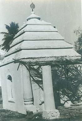 It is a plain structure of single pidha built in sandstone. The presiding deities, one brass images of Radha and Krishna, and the side deity is a wooden image of Gayatri. The temple wall is heavily lime plastered. The height of the temple is about 20 feet. |