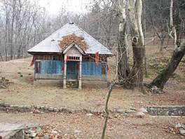 The present temple is a relatively recent construction and seems to have been rebuilt in the mid or later part of the 20th century. A small centrally located wooden porch gives access to the temple. The single storey structure consists of a main chamber that accommodates the stone deity. The front face of the structure has wooden paneled facing while all the three sides are constructed in dhajji dewari. The CGI roof is pyramidal in shape with a metal kalash surmounting it. |