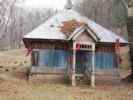 The structure is constructed in brick masonry within a dhajji dewari framework with the masonry laid in mud mortar. The original mud pointing has been replaced with cement pointing. The walls are left un-plastered on the outside, while on the inside they are plastered in mud. Two decorative wooden columns flanking both sides of the entrance porch embellish the otherwise ordinary temple. |