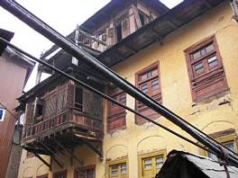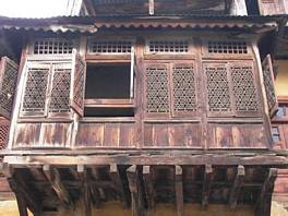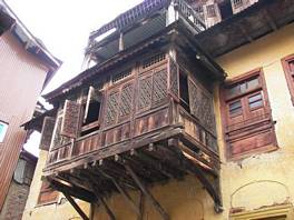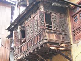 The main materials of construction used in the building are brick and timber. The building is essentially a load bearing construction which is supported on a low plinth. The use of timber is seen in the construction of wooden floor joists and floor beams. There is also a shallow basement which seems to be affected by rising dampness. The ornamental features of the building include the latticework on the projecting wooden balcony. The walls are plastered in lime on the outside and mud on the inside. The windows are all square in shape partly glazed and partly paneled. On the first floor, the plaster around the windows is incised to give an impression of pointed arches. The tone of plaster is a rich yellow which imparts an interesting overall texture to the house. |