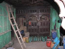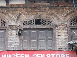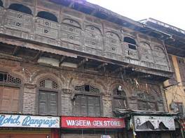 The property is located on the main Sher Bagh street and faces it. It is an extensive building, belonging to three partners. The ground floor has a series of 4 linear shops and the first floor, accordingly, has three rooms above these shops. The top floor which is the second floor comprises a spacious hall, used for family and other social gatherings. The entrance to the building is from the rear of the house. The second floor is made wholly in timber and projects out about 3ft from two sides. The projected continuous balcony is adorned with decorative woodwork. The wooden balcony is arcaded and inserted with vertical varusi screens. |