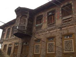 The main materials used in the construction of the building are stone replaced by brick , brick and timber. The ground floor seems to have been rebuilt recently using brick masonry as opposed to the originally existing stone masonry. The structural system of the building consists of load bearing masonry walls laid in mud mortar. Each fa ade has a series of segmental arched windows. All the windows start at floor level comprising carved wooden sills and glazed and paneled window panels. The rooms are replete with khatamband ceilings and fine decorative incised mud plaster. Each floor level is emphasized by a decorative brick frieze band running the entire length. Internally the floors are covered with sathrun mud flooring in most of the rooms. The building is covered with a traditional pitched roof comprising CGI sheets with ornamental finials at each roof edge. Other decorative elements include roof pendants and carved eaves boards. |