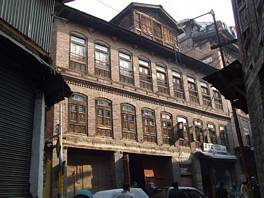 The Khan house is located on the main Reshi Bazaar road and is a linearly aligned building along the main road and is a commercial-residential mix use property. The building has three floors with the ground floor comprising shops and the two upper floors serving as private residence. In addition to three shops, there is also an entrance doorway in the ground floor which leads into the building. The building has a plain face on the front with series of wooden paneled windows being the only prominent feature. The building has a robust appearance and reflects excellent workmanship. |