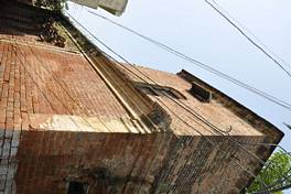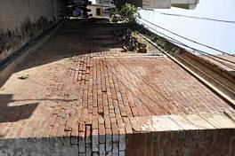 The haveli is constructed in brick which is also used for various decorative and floral moudlings around the house. The ceiling joists are constructed in timber. Wood is also used for heavy ornamentation on doors and windows. All the window and doors have projecting arched lintels. |