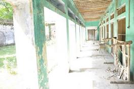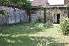 The main component of the building material is lakhori brick which is left exposed externally and lime plastered internally. Lime plaster is also used to decorate the interiors with mouldings. The ceiling has timber joists and is left exposed on the underside. The roof is flat covered with brick bats and finished with a thick layer of lime mortar. The windows and doors are square wooden paneled but have moulded and arched brick surrounds. |