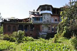 Hidden behind thick vegetation, and barely seen from the road where it is located, the property is extensive and outstanding. The main quarters have two floors and the quarters probably service behind it have a single floor. The property is accessed from an entrance gateway into the private garden. The building entrance is located at the side and is through a recessed wooden columned porch. The wooden entrance door is also of highly ornate quality. The building has striking projecting wooden dubs or jharokas bay windows on each end of its main fa ade. The windows of the dubs have wooden paneled windows with a small glass inserted in the middle of the top panel. Interestingly in place of wooden lattice work, the screens are made of iron. There are a number of spacious rooms within the house and grand porticos in the first floor. |