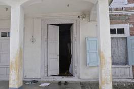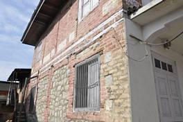 This building comprises of a rectangular plan with two storeys and a dormer attic space. From the compound entrance in the east the southern front fa ade is approached. The main entrance door is embedded within an asymmetrical porch of modern construction. As per the owner, the building consisted of two dubs which have been dismantled. It s planning is of a typical Kashmiri house with a backside staircase and a front lobby with rooms on either side. The ground and first floors have three rooms each while the attic propping up from the first floor consists of a hall. |