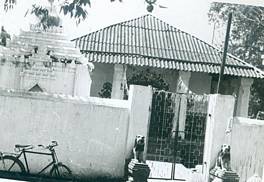 It is a two chambered house type temple built in bricks. Its roof is made of asbestos, which is supported by wooden beams and bricks pillars. The temple stands on a high plinth. The doorjambs are plain. The side deties are Trivikrama. Varaha and Narasingha. The prisiding deities are wooden images of Jagannath, Balabhadra and Subhadra. Its height is about 25 feet. A recent built Aruna pillar of 6 feet height is found infront of the temple. A big boundary wall encloses the temple complex. |