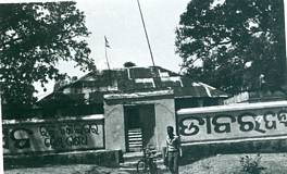 It is a two chambered tin roofed temple built in brick and lime. The roof is supported by wooden beams and brick pillars. The temple stands on a brick pillars. The temple stands on a high plinth. The door jambs are plain. The side niches are empty. The presiding deities are images of Lakshmi and Narayana of brass. During the carfestival of lord Jagannath stays here for ten days. A corridor of 4 feet wide is provided around the temple. The pictures of Narayan Siva and Hanumana are found on its outer walls. Height is about 25 feet. A big boundary wall encloses the temple complex. |