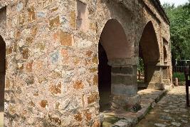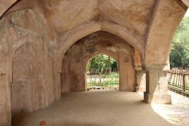 The building is built of rubble masonry up to the plinth level and Lakhori brick masonry finished with lime plaster. Red sandstone has been used as structural material on the roofing and some part of the flooring.