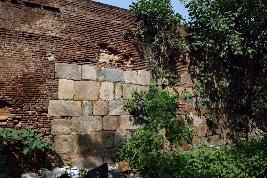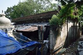 The building is built of rubble masonry up to the plinth level and Lakhori brick masonry finished with lime plaster. The rare wall of the building constructed partially by semi-dressed local grey stone and partially with Lakhori bricks. Red sandstone has been used as structural material for the roofing, chajja and some part of the flooring.