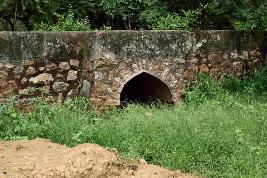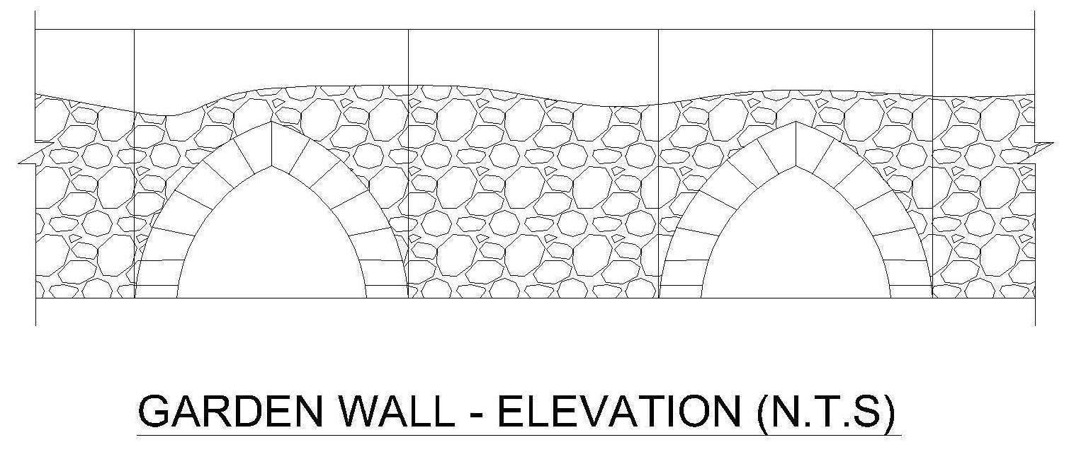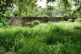 The enclosure wall is about 1.75 m high and runs for over 30 m. On top of the wall, there is a U shaped water channel which probably distributed water to the garden. The garden is built on four levels. In the center of the wall, there is an arched recess facing east.
