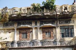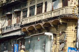 The gigantic three-storeyed structure built on a grand scale and stands on a large plot, dominating the surroundings with shops on the ground floor. The first floor and second floors have verandah which are recessed in the center. It has a very decorative facade. With a series of arches on the facade embellished with lattice screens work. Mouldings have been used to articulate the building form, in the classical tradition. The external wall has been relieved by regular pilasters with equal rhythms in block pattern. The external arches over the doorway are semicircular. The projected out balcony which runs all along at all levels furnished with multi design decorative jali pattern dominating the facade. At second floor projected balcony supported on carved stone brackets. It has been painted in a soft combination of off-white and yellow.