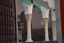 The present two-storeyed building stands on a raised plinth. The ground floor of the structure, which is facing east, is two-bay deep and entered through three pointed arch openings supported on cylindrical columns with minimally carved base and capital. A sandstone chajja carried on typical stone brackets above the arched entrance. The upper floor and the extended north portion have now been built lately.