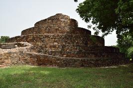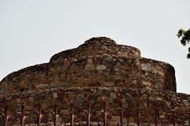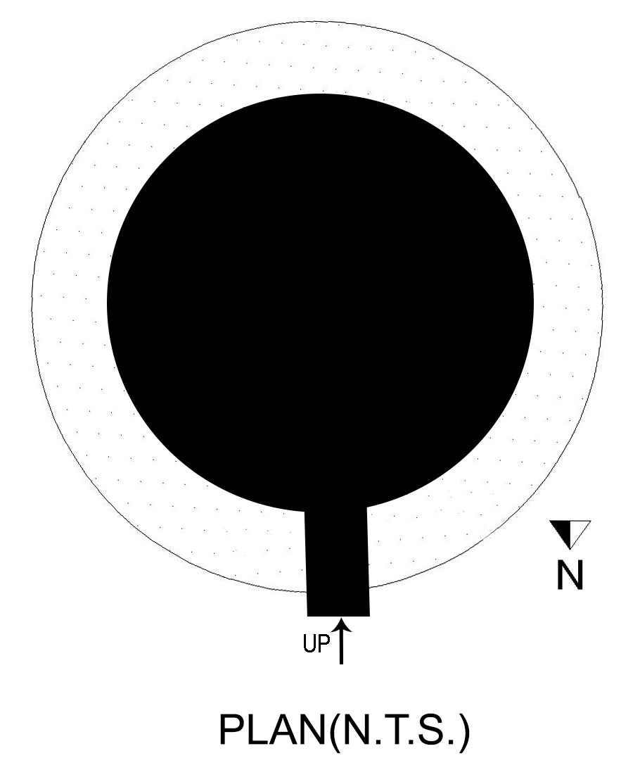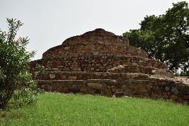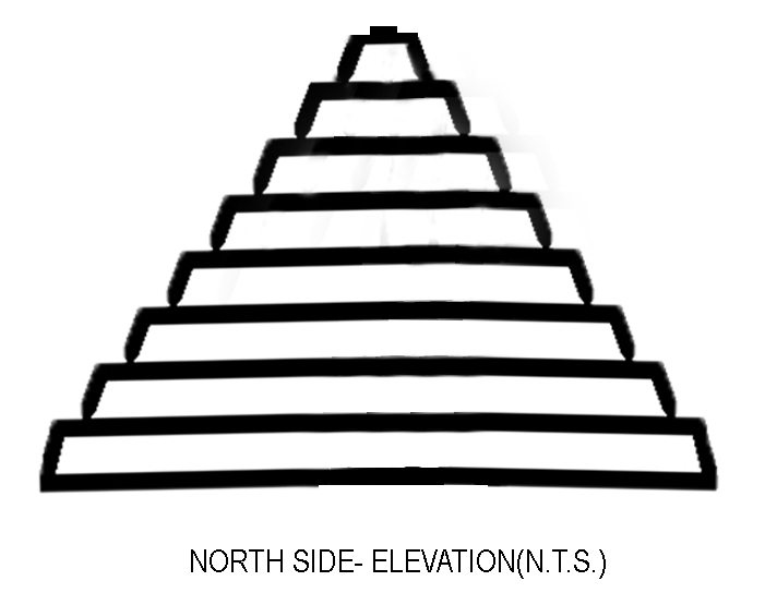 The building is constructed of rubble masonry and consists of series of circular platform in descending order, having the form of a terraced pyramid of successively receding stories and resembles a ziggurat and has no apparent function except to be part of the landscape. Just like a pyramid, a series of steps takes one to the top. It is distinctive in that it is fitted with colossal semicircular protrusions at the center of each face.