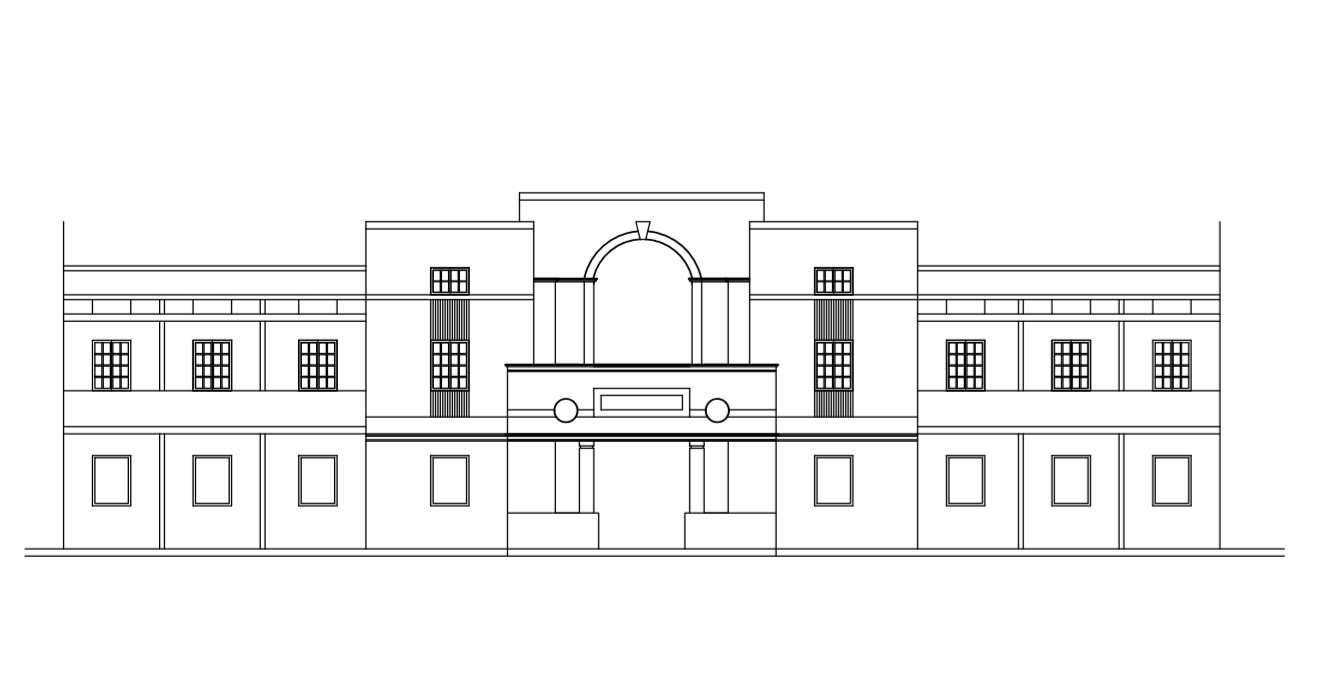 Entrance of the building is through an arched gateway flanked by lamp posts and circular columns.There are open court in the premise. Around the courtyard there are Colonnaded Verandahs. This double storeyed structure is presently used as a hostel. At the front there are rectangular gardens with a few coconut plants.