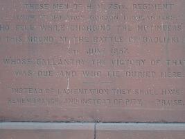 | Brief History / संक्षिप्त इतिहास | The memorial is dedicated to the members of the 75th Regiment of the Gordon Highlanders who fell here at the battle of Badli Sarai on 8th June,1857 |