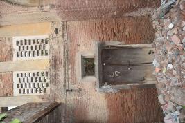 The structure is built using bricks, lime and plaster. The door and windows are made up of wood. |