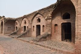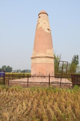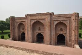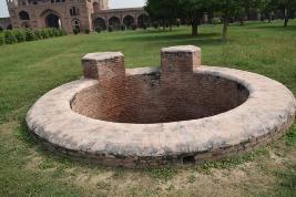 This is a complex with several structures. It has a Kosminar built on a rectangular raised platform surrounded by iron railing having hexagonal base. It has well with embankment wall and two raised platforms. There is another big structure with pointed arches entrance. The fa ade has two pointed arches on both the sides and semi-circular arched openings supported by pillars and have cornice. It has semi-circular opening above the main entrance. The fa ade has two big columns having chattris on the top. The backside of the structure has pointed arched openings and series of pointed arches in the corridor with rectangular gates having niches on both the sides. |