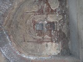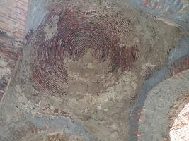 The building is made of lakhori bricks plastered with lime plaster and mud. |