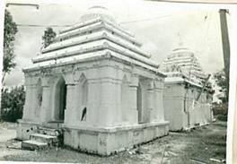 This is a two chambered temple pidha design. The doorjambs have the images of two dvarapalas and above the doorjambs one finds a planets slab as the lintel. There are twenty small bull of found kept inside the temple complex. The side deities are Ganesha, Kartikeya and Parvati. A brick boundary wall encloses the temple complex. A vestibule connects the porch with the sanctum. The porch openings on all sides. The temple complex stands on a low plinth and the entire structure are plain height of the temple is about 20 Feet. |