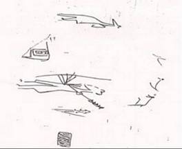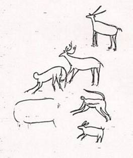 A few rock shelter are painted with red white pigments. These belong to Mesolithic and Chalcolithic period. Apart from that, there is red painted inscription of shell script. Important rock paintings- 1- Dancing figure. 2. Archer with mask and holding harpoon type arrow. 3. Animal figure like monkey, bull, Neelgay hunting scene. 4. Group of animal figure, wild boar, deer etc. According to the local people, these paintings seem to have been drawn by female ghosts. There are natural rock shelters and red white colours have been used.