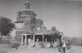 1. Stone age tools - near the rock shelters a quite number of early stone age tools and microliths were found. 2. Rock paintings - There are many painted rock shelters on the back side of the village. One rock shelter contains red painting in mesolithic style depict in animal figures. 3. There is a ruined fortress of Chnandravat dyansty at the western side of the village. 4.There is a ruined temple of Pratihar period and it was reconstructed in the later period by the using old remains. We can see the decorative door frame card with Ganga-Yamuna- Door keeper and other figures. The village was fully developed in later Gupta, Pratihara and Parmar periods. 5. Remains of residential Buildings. For preparation of materials, only local sand stone was used. The rock shelters situated near the village are locally known as Bhata.