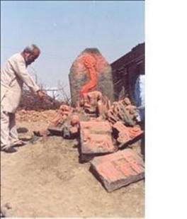 1. Fossils - back side of the village in the agricultural field of Ramesh Pancholi a large number of fossils are scattered probably of crocodile or tortoise. 2. Stone age tools - Around the village, stoneage tools of early palaeolithic period are found. These are handaxe, cleavers and other tools made on flakes. 3. Karaji-ka-Otla - At the entrance of the village, there is a platfrom above it Pratihara and Paramara sculptures are lying under worship. Important sculptures are Vishnu seated in Padmasana, female deity, dancing apsara, and architectural fragments. 4. Trivikram -ka-Chabutara - This platfrom is situated near Panchayat office. There are many sculptures under worship like Trivikram, Nandi and other broken sculptures. 5. Shitla- mata-ka-mandir - This mordern temple is situated in the centre of the village. There are many broken sculptures lying under worship. These are eight armed Durga, Narsingh, Dwarpal, Ganesha, Agni, Parvati, Apsaras, Saraswati, Dikpal, panel of Krishnaleela etc. 6. Old step wells - There are two step-wells are in ruined condition built in 14th -15th century A.D. The remains are made of local sandstone. As per the tradition, the site was developed by the local resident Lotha.