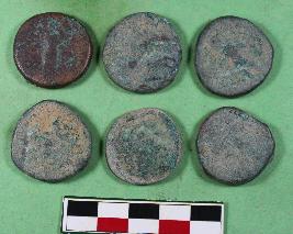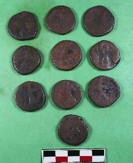 Coin GM-DCA-PB-1233213 Reportedly found in village Satiawala, thana Sadar, Dist. Fzpr, 4 km off the Fzpr-Moga road in the field of Harbans Singh s o Jang Singh while excavating earth for making bricks. Sent by DC SSP Fzpr to the dept and entered in its registers on 30 03 2003. Part of a large hoard of 3070 coins all copper Punjab